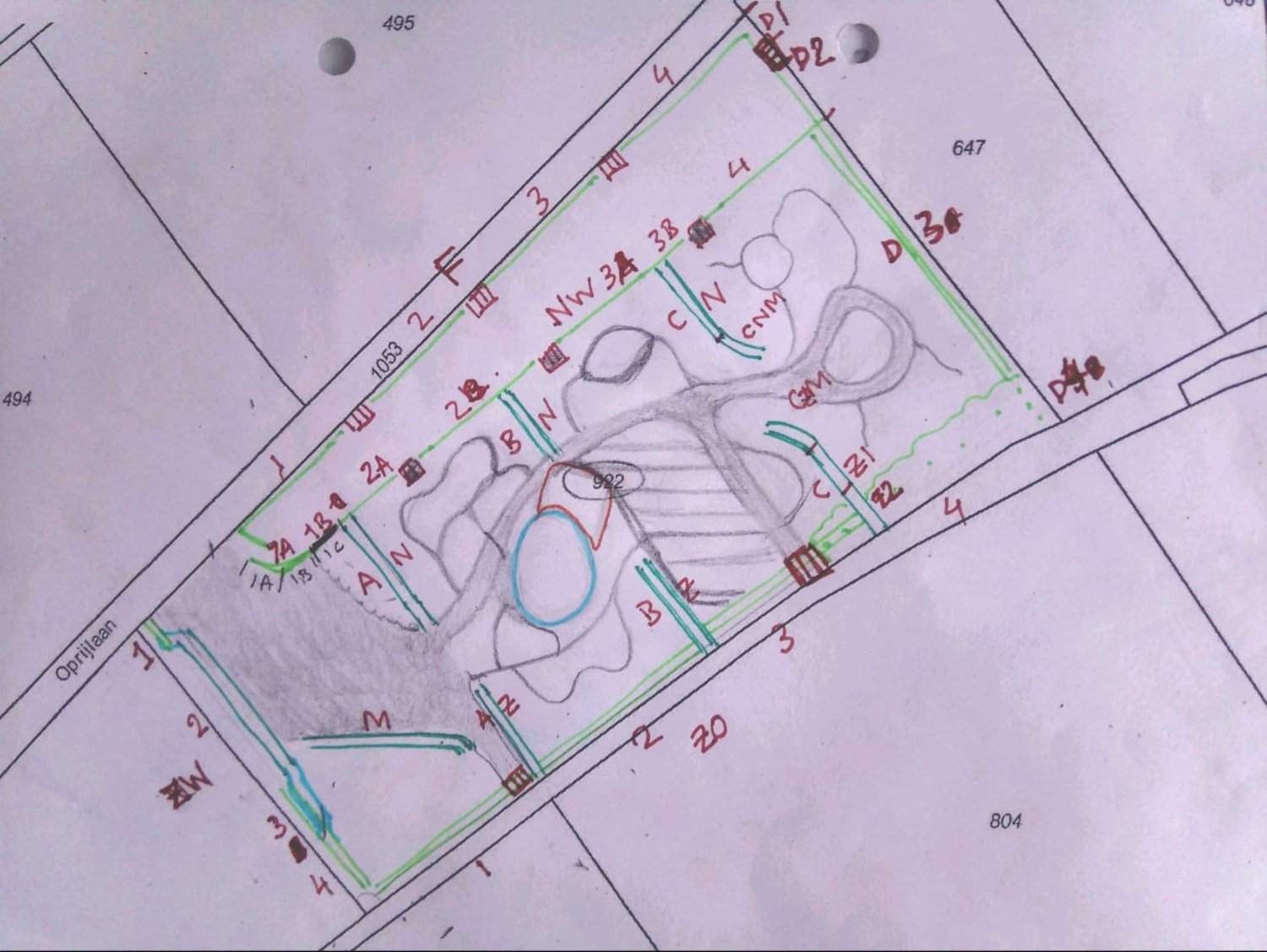 Niet alleen de aanplant vraagt om aandacht. Om te planten, te bewateren en te oogsten zonder de begroeiing te beschadigen, hebben we paden nodig. Paden waarover we met een auto met aanhanger of een tractor kunnen rijden en waarmee we alle hoeken van het voedselbos kunnen bereiken. Paden die passen bij de sfeer van het voedselbos. Tegelijkertijd willen we het padenstelsel beperkt houden. Dat vraagt om een uitgekiend plan en op papier hebben we al verschillende slimme padenstelsels bedacht. We broeden nog op het definitieve ontwerp. Echte routeplanners! .